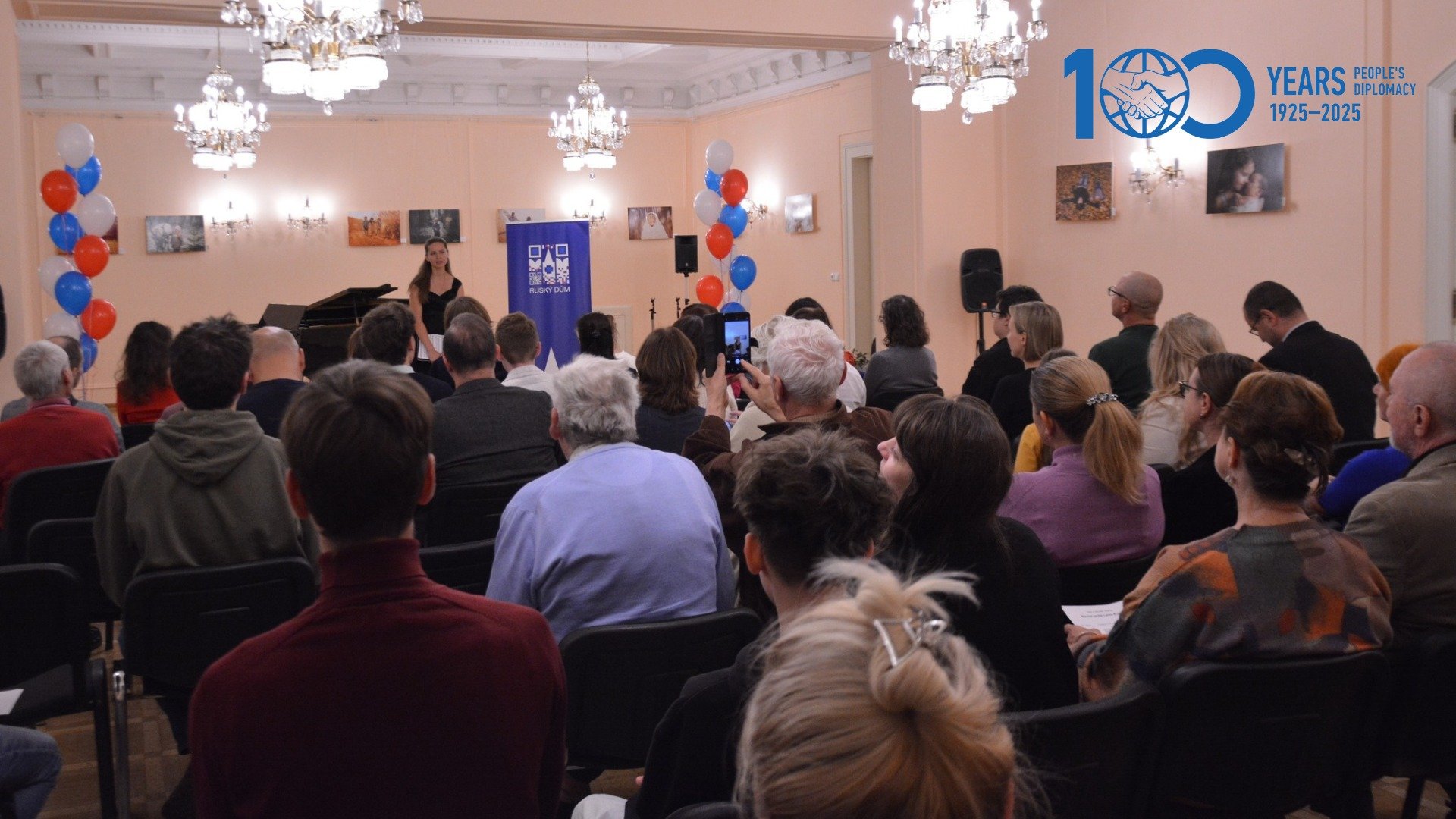 Ruský dům v Praze hostil koncert „Hudba bez hranic« věnovaný 100. výročí národní diplomacie. Na akci zazněly klasické klavírní skladby známých ruských i zahraničních skladatelů, včetně „Sentimentálního valčíku« Petra Iljiče Čajkovského, „Preludie op. 23» Sergeje Rachmaninova a dalších.