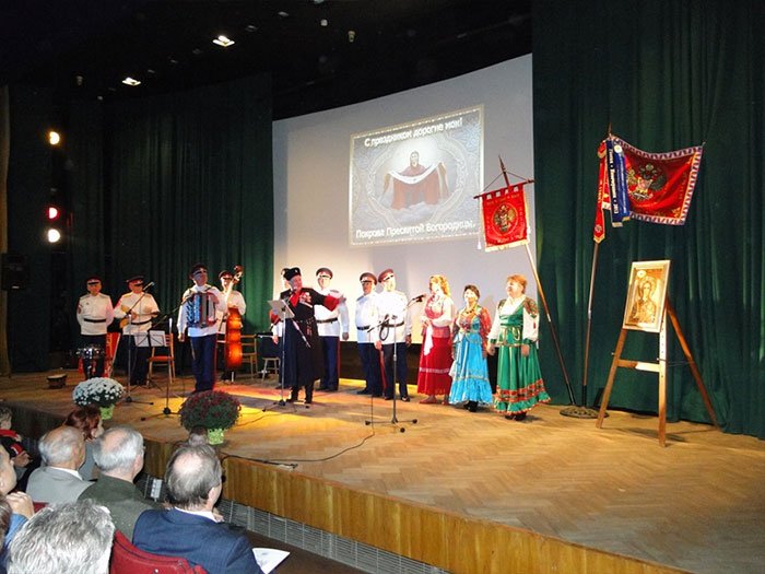 Před koncertem se k divákům obrátil ataman Všekozáckého svazu českých zemí a Slovenska Michail Dzjuba. Seznámil hosty s pravoslavným svátkem „Pokrova Presvjatoj Bogorodicy«. Spojil tento svátek s historií kozáctva a podrobně objasnil, proč právě „Pokrov Presvjatoj Bogorodicy» je tradičně tak ceněn kozáky. Rovněž podtrhnul, že uplynul právě rok od okamžiku vzniku folklorního souboru „Kazaki Vltavy«, který si již vybojoval lásku a uznání.