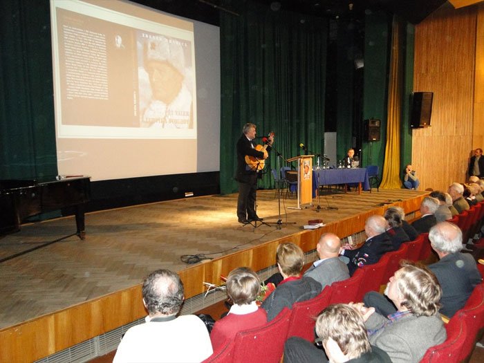 Презентацию вел президент Чешской ассоциации русистов Йиржи Клапка, который под гитару исполнил несколько песен военных лет.