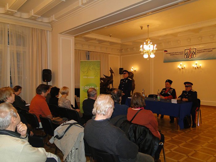 Prezentaci zahájil ataman Všekozáckého svazu českých zemí a Slovenska Michail Dzjuba, který poděkoval Ruskému středisku vědy a kultury v Praze za pomoc v organizaci akce, která je velmi důležitá pro kozáky a vůbec pro všechny, kdo si váží historie své země. Zároveň podtrhnul, že vydání díla dvou historiků – člena Svazu Evropy Igora Bondarenka a plukovníka kozáků, náčelníka historické a památkové služby Všekozáckého svazu českých zemí a Slovenska Josefa Dolejši je možné označit za unikátní. Na základě archivních dokumentů a svědectví pamětníků kniha vypráví o pobytu kozáků na území Česka a Slovenska od poloviny XVIII. století do našich dní. Kniha byla vydána Evropským střediskem výtvarného umění v Bratislavě (2013) pod redakcí akademika Mezinárodní akademie kozáctva, kandidáta historických věd D.V. Klimova. Cílem autorů nové knihy je obnovit zapomenutá fakta historie, ukázat úlohu kozáctva v rozvoji zemí střední Evropy.