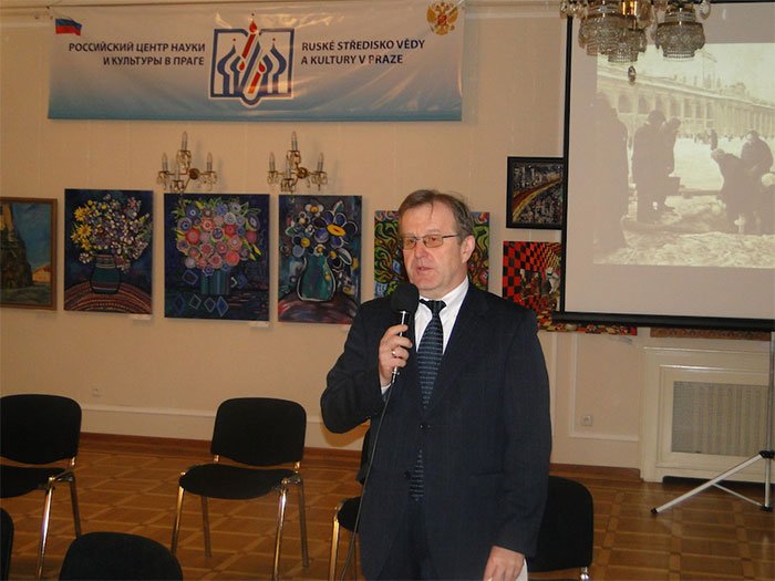 Советник-посланник Посольства Российской Федерации в Чехии Анатолий Агапов поздравил гостей и ветеранов вечера с памятной датой в истории России. Рассказал о мероприятиях в России и за рубежом, приуроченных к 70-ой годовщине снятия блокады Ленинграда.