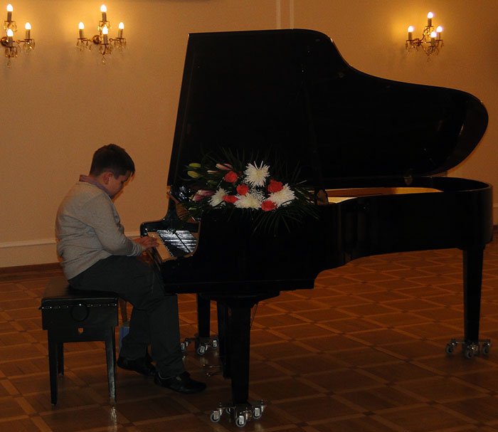 В первом отделении учащиеся в возрасте от 6-ти до 16 лет исполнили музыкальные пьесы и фрагменты произведений великих русских и европейских композиторов. В исполнении Алисы и Ричарда Акифьевых, Насти Остапиной, Никиты Шаповалова, Полины Емельяновой, Даши Терёхиной, Маши Керстаевой, Ильи Жукова, Лены Аршакян и других прозвучали известные произведения П.И.Чайковского, Д.А.Россини, В.Р.Вагнера, Л.Ван Бетховена и Н.Паганини.