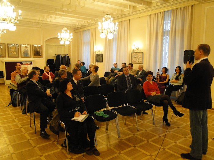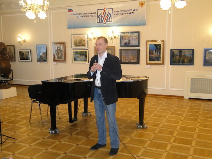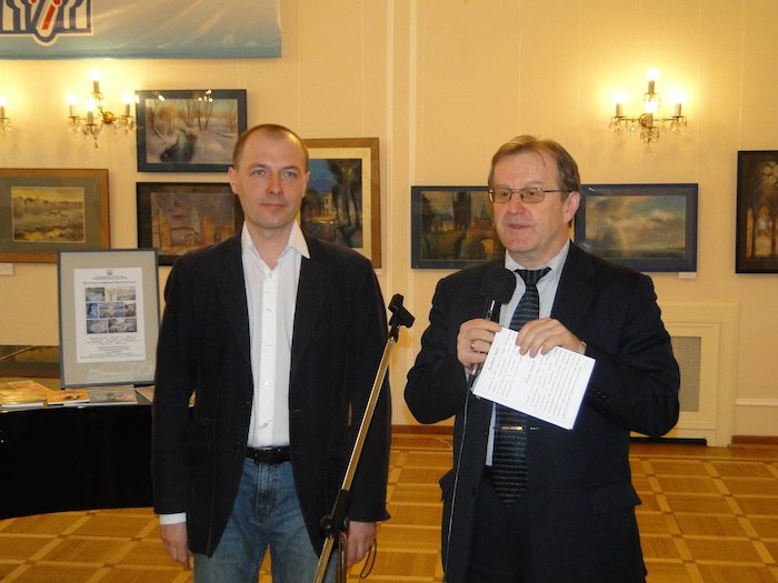 Kurátor výstavy, člen Svazu malířů Ruska, Andrej Judin poděkoval Ruskému středisku vědy a kultury v Praze za pomoc při přípravě a organizaci výstavy. Pověděl o tom, že na výstavě jsou představeny obrazy 13 tverských malířů. Všechny obrazy jsou nakresleny v různých technikách a stylech, ale spojuje je neobvyklá poetika předávání přírodních krás Ruska a rovněž honosných katedrál a malých uliček Prahy, překrásných portrétů ruských krasavic.