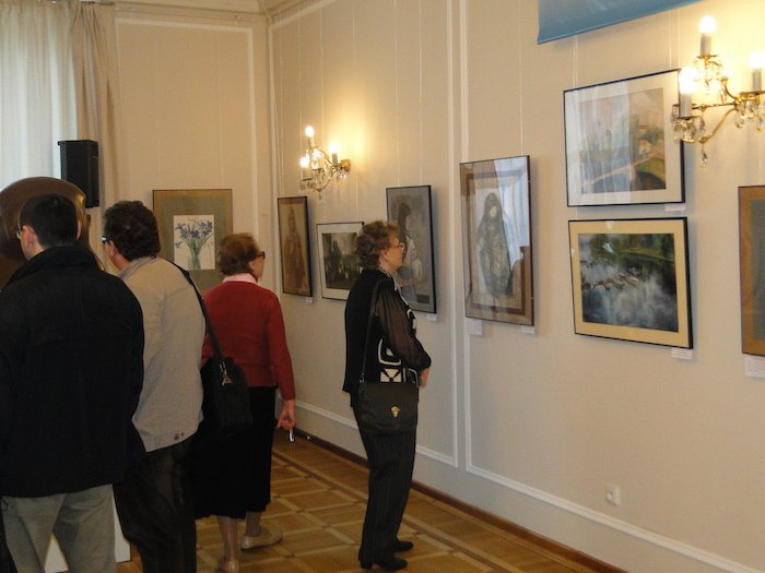 Hosté, mezi nimiž byli čeští občané i ruští krajané se s vekým zájmem seznámili s vystavenými díly a dlouze diskutovali s kurátorem výstavy a jeho manželkou.