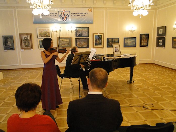 Manželka malíře Rozalija Judinová zahrála na housle díla tverských skladatelů „Ukolébavka« a „Žlutá růže». Na klavír ji doprovázel laureát mezinárodních soutěží Filipp Subbotin. Posluchači byli příjemně překvapeni hloubkou a provedením nových děl, která Zastupitelstvím Rossotrudničestva v ČR. Zastupitelstvím Rossotrudničestva v ČR. v Praze zatím ještě nezazněla. Každé číslo bylo odměněno bouřlivým aplausem vděčných diváků.