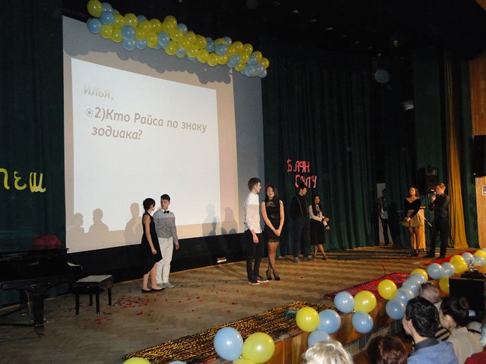 Páry v pestrých národních krojích připravily malé divadelní scénky, z nichž každá vypovídala o starých kazašských tradicích a svatebním obřadu. Po ukončení umělecké soutěže páry odpověděly na otázky jeden o druhém.