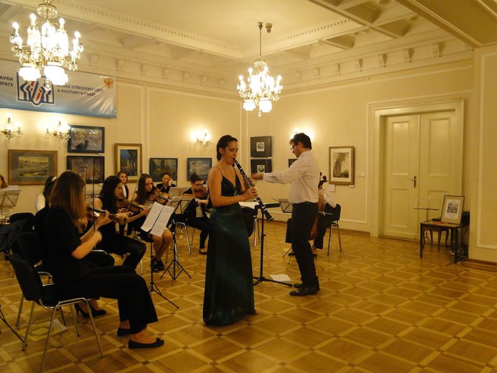 Молодой дирижер Йозеф Штефан уверено руководил струнным оркестром. Скрипачки Маркета Доминикусова и Маркета Надворникова виртуозно солировали в 3-м и 4-м концертах для скрипки с оркестром Вольфганга Амадея Моцарта. Жофия Соучкова исполнила концерт для флейты с камерным оркестром чешского композитора Йозефа Мысливечека и покорила слушателей игрой на флейте. Горячими аплодисментами публика наградила Веронику Хофманову за изящное соло на кларнете в Теме с вариациями Джоаккино Антонио Россини.