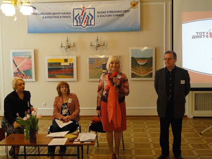 Председатель МКИ «Ключ» Анна Евсина рассказала о правилах проведения диктанта и представила главного редактора газеты «Пражский экспресс» Ирину Шульц, которая в этом году диктовала текст. Газета «Пражский экспресс» второй год активно участвует в подготовке и освещении акции «Тотальный диктант» и в этом году отмечает свой пятнадцатилетний юбилей.