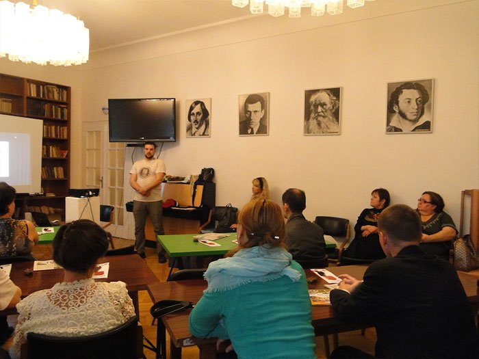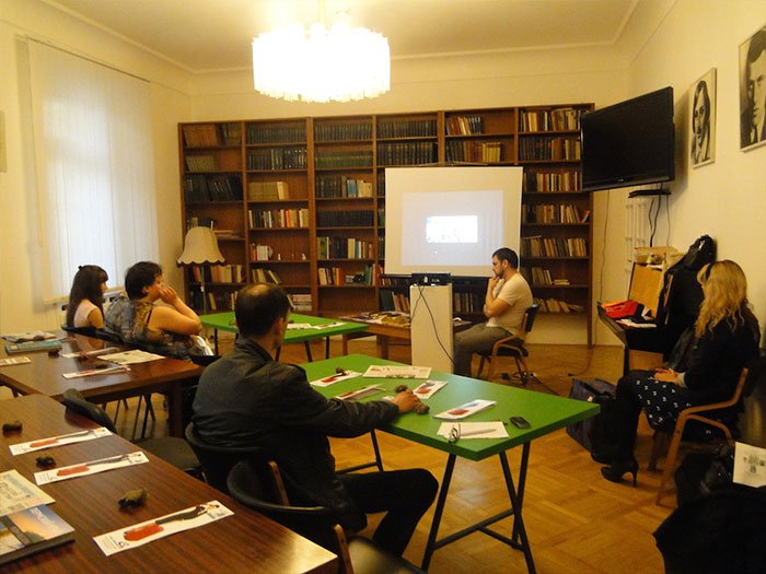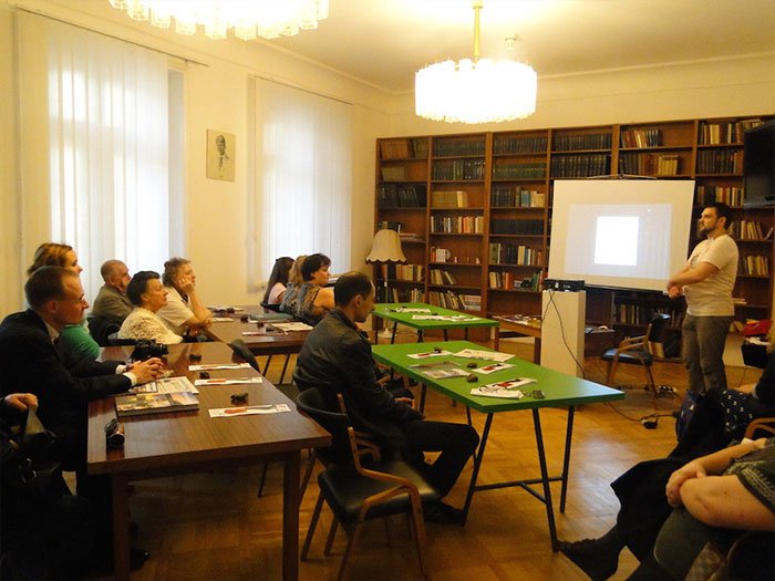 Арсен Сельвян является корреспондентом пермского журнала «Мы – земляне» и страстным исследователем истории и культуры родного края. Он подробно рассказал об уникальном искусстве, истоки которого уходят в глубокую древность – период палеолита. «Пермский звериный стиль» — это искусство металлического литья небольших пластинок с изображениями культовых животных, а также еще более таинственными образами человека-зверя, которые в большом количестве были обнаружены на общирной территории Зауралья. Фигурки чаще всего выполнены из бронзы и серебра и поражают современного человека удивительным чувством гармонии и изящества. Рассказ Арсена сопровождался демонстрацией слайдов. Его выступление дополнила Евгения, которая заинтересовала слушателей рассказаом о древних легендах Пермского края.
