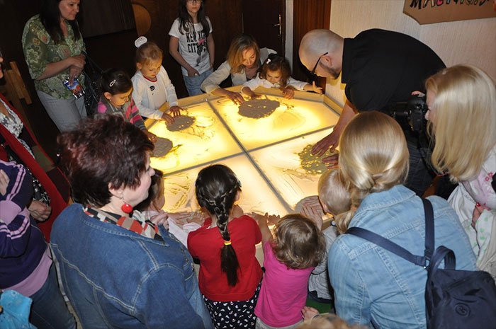 Одним из центральных номеров стало выступление дуэта музыкального коллектива «Duo Eleganza» Филиппа и Яны Субботиных и художника песочной анимации «SandPRO» Алексея, который под музыку Венгерского танца Иоганнеса Брамса на специальном стеклянном столе на сцене рисовал песком живые картины.