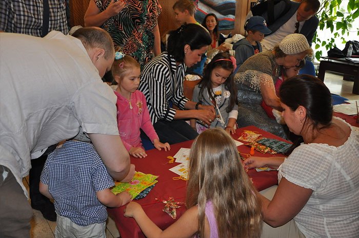 Затем на разных площадках Российского центра науки и культуры начали работу детские мастерские. Среди них — мастерская белых журавлей, песочная мастерская, мастерская волшебных бабочек, мастерская «Дети на земном шаре», мастерская «Гирлянда счастья», мастерская «В гостях у африканских друзей», мастерская «Танцевальный джем» и мастерская «Русские потешки».