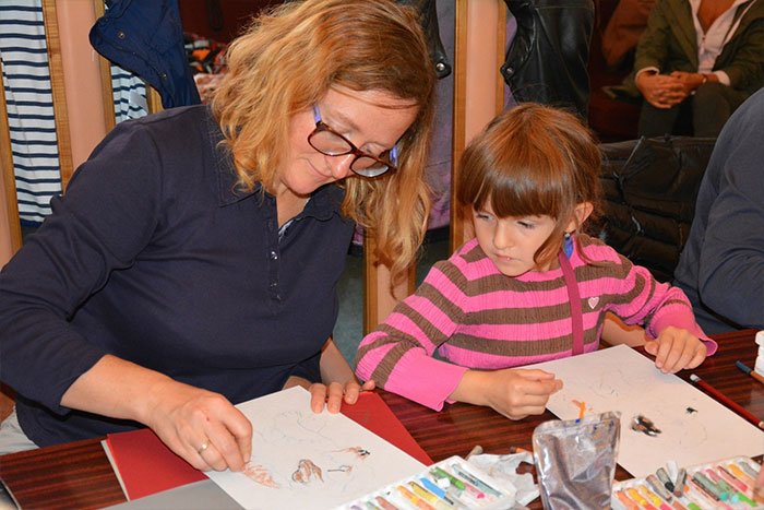 На этот раз Константин Щербаков и его супруга – представитель Волгоградской общественной организации «Центр творческого развития »Клуб друзей» Лидия Урсу – представили несколько новых работ. Они подробно рассказали пришедшим на мастер-класс соотечественникам и чешским гражданам, многие из которых были с детьми, об истории и особенностях техники пастели. Художник показал основные приемы художественного изображения животных, поделился секретами передачи характера и экспрессии в анималистике, провел практические занятия по живописи в этом жанре.