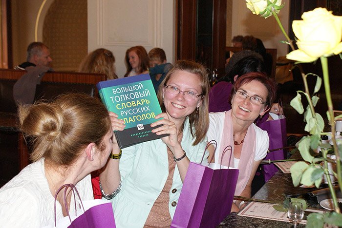 Затем в Муниципальном доме прошла встреча учителей, в ходе которой обсуждались актуальные проблемы преподавания русского языка. По итогам встречи преподаватели были награждены памятными дипломами и редкими словарями русского языка.