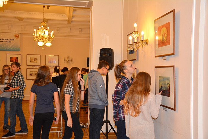 14 ноября выставку «Веселый Пушкин» посетили учащиеся Школы Посольства России в Чехии, которые с интересом ознакомились с работами и выслушали интересный рассказ старшего научного сотрудника Музея-заповедника «Михайловское» Татьяны Максимовой.