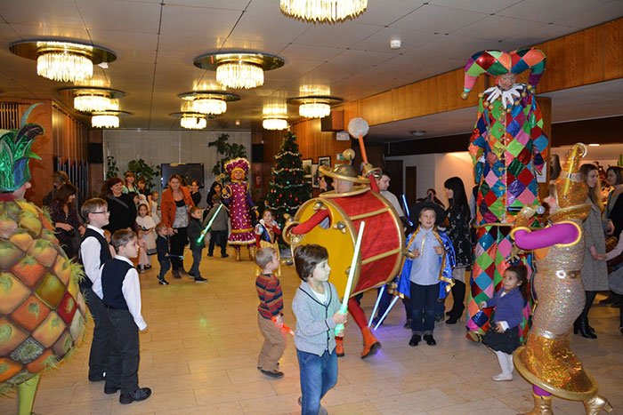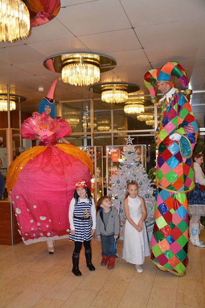 Полная чудес праздничная программа началась еще до самого представления. В фойе РЦНК ожили сказочные герои на ходулях, а Дед Мороз и Снегурочка собрали у новогодней ёлки всех маленьких гостей, любящих приключения и весёлые игры. Пространство заполнили ростовые куклы – большие игрушки на специальном каркасе, которые надевается на человека, формируя образ веселого персонажа. Всех их артисты театра делают сами.