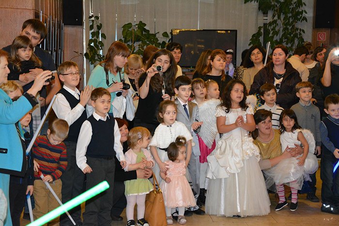 Зрители живо реагировали на всё происходящее на сцене. Дети были в восторге, когда персонажи перенесли действие спектакля прямо в зрительный зал, устроив настоящее новогоднее шоу с хлопушками.