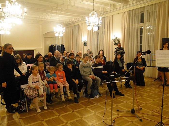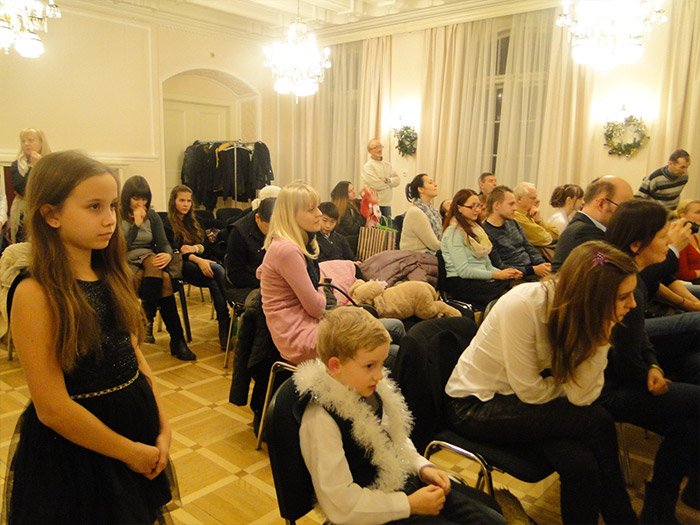 В этот вечер 17 российских и чешских учеников в возрасте от 6 до 15 лет выступили перед слушателями. Нарядные и немного взволнованные они старательно исполняли на рояле первые в своей жизни классические пьесы, а также рождественские колядки, пели веселые детские песенки и читали стихи. В независимости от сложности и продолжительности выступления всех их горячо поддерживали добрые зрители – мамы, папы, братья, сестры и друзья.
