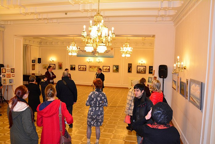 Vedoucí Zastupitelství Rossotrudničestva v ČR Leonid Gamza přivítal hosty a představil malíře. Zdůraznil, že malíři svá zajímavá díla již dříve v Praze vystavovali.