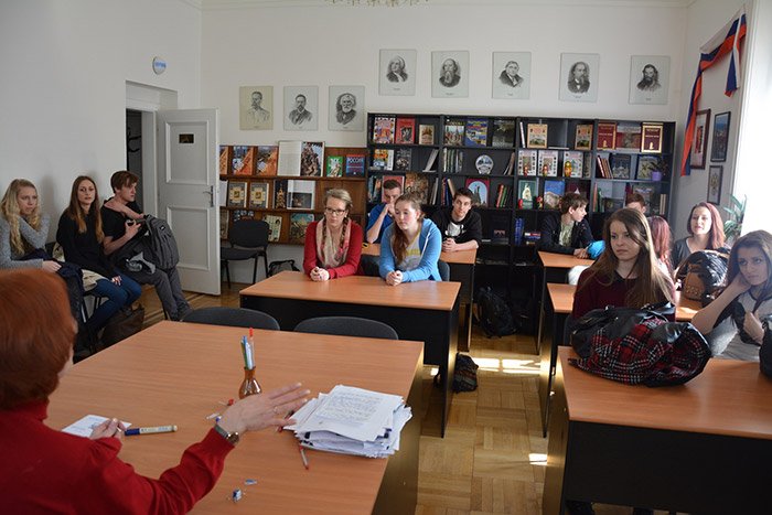 Po prohlídce byla pro studenty organizována v přednáškovém sále kurzů ruského jazyka ukázková hodina na téma „Moskva – hlavní město Ruska«.
