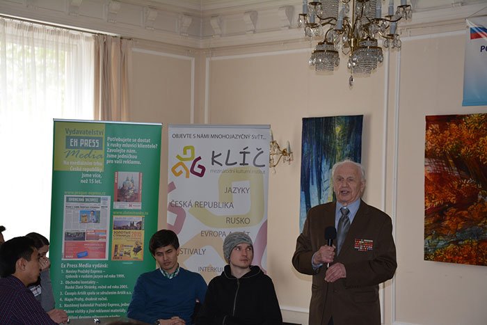 Председатель МКИ «Ключ» Анна Евсина рассказала о правилах проведения диктанта. Она также представила проект о проживающих в Чехии ветеранах Великой Отечественной войны «Библиотека судеб» и его автора — руководителя общественной молодежной организации «Пражское вдохновение» Анну Рудницкую. Она рассказала участникам акции о проекте и продемонстрировала на экране отрывок из фильма.