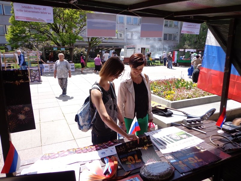 Россия на фестивале «Красочный край» была представлена павильоном представительства Россотрудничества в Чехии, Российского центра науки и культуры в Праге и русскоязычной общественной организации «Ковчег-Арха». В нем демонстрировались фильмы «Евангельский круг Василия Поленова» (2014 г.), «Санкт-Петербург и пригороды»(2006 г.) и «Байкал. Легенды великого озера» (2004 г.). Гостям бесплатно раздавались программы РЦНК на май, информация о курсах русского языка, а также георгиевские ленточки. Маленьких посетителей и их родителей угощали российскими конфетами и русскими традиционными сладостями.
