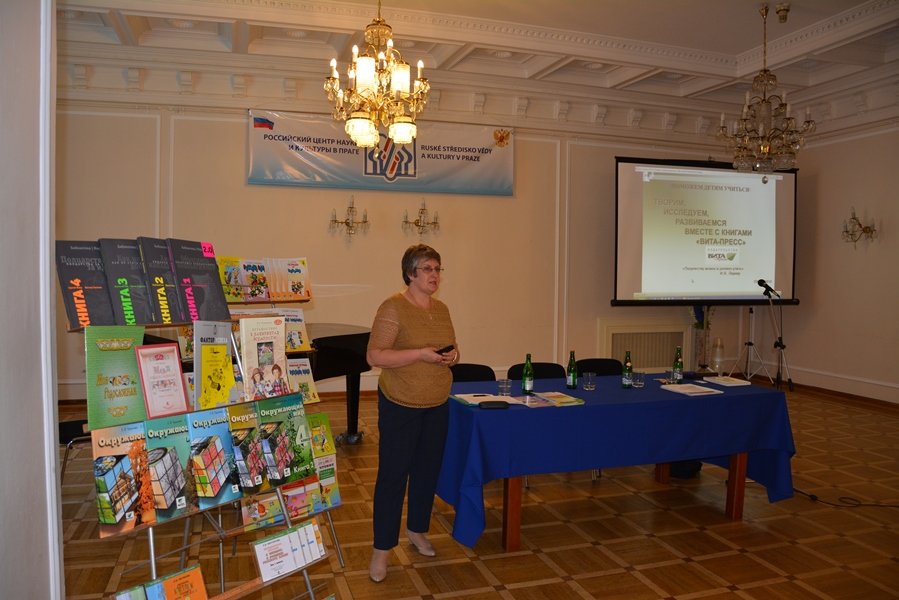 Методист издательства «Вита-пресс» Светлана Димитриева и методист департамента образования г. Москвы Татьяна Волкова провели презентацию «Творим, исследуем, развиваемся вместе с книгами »Вита-пресс«. Рассказали о новых книгах »Внеурочная деятельность в начальной школе«, »Школа креативного мышления«, серии »Сказки-изобреталки от кота Потряскина«, »150 творческих задач о том, что нас окружает«. Особо отметили серию книг »Учимся разумному финансовому поведению», выпущенную в рамках совместного проекта Министерства финансов РФ и Всемирного банка »Содействие повышению уровня финансовой грамотности населения и развитию финансового образования в РФ«.