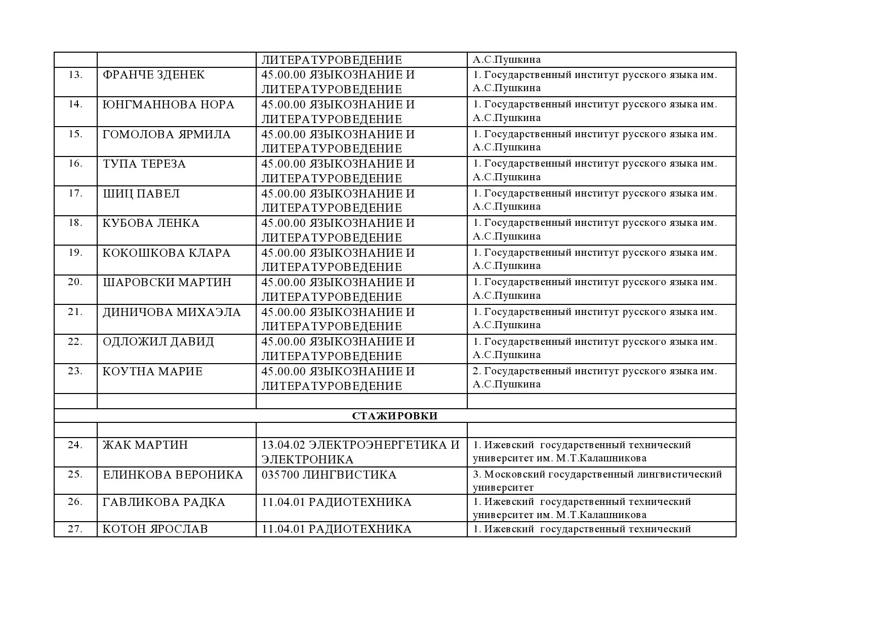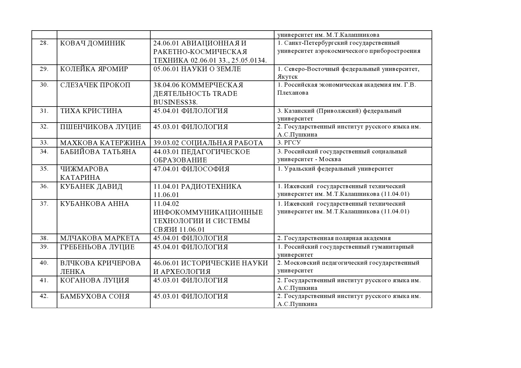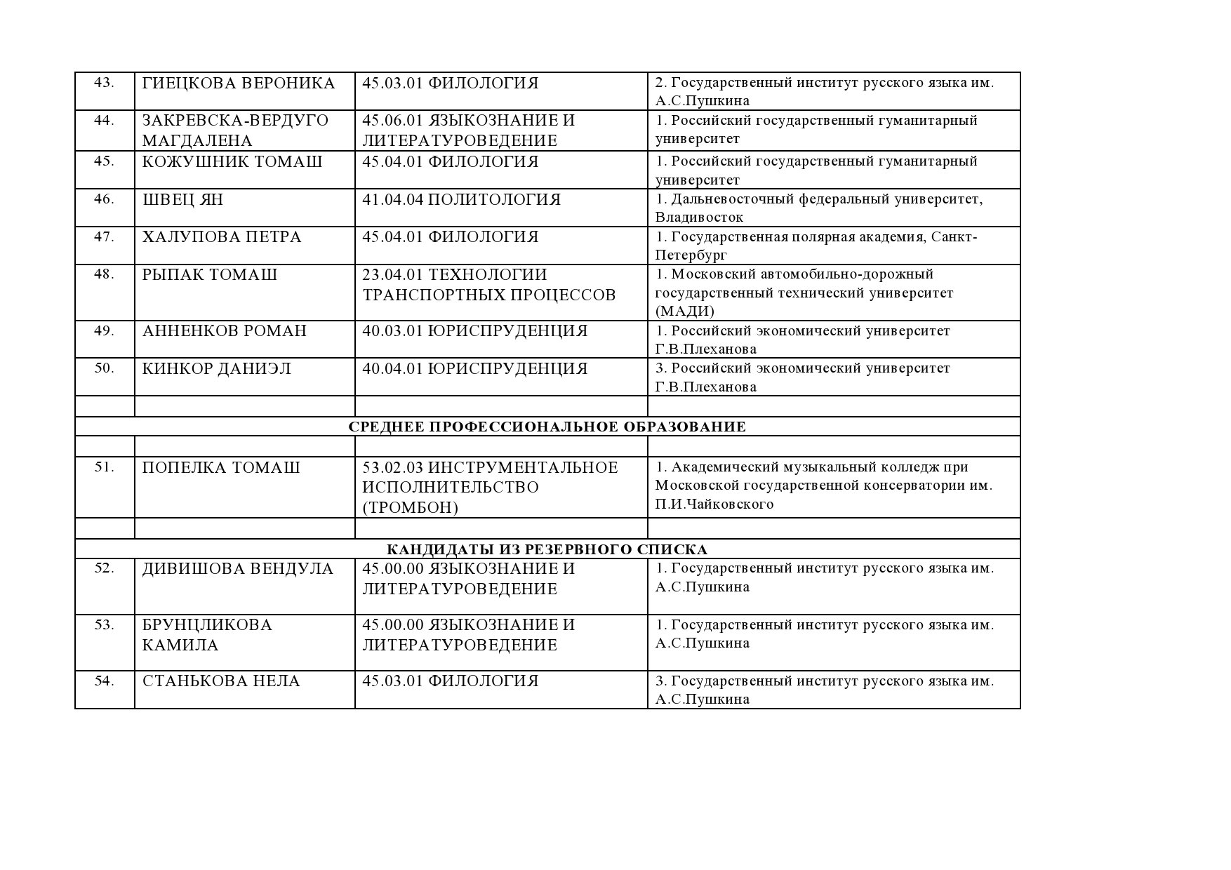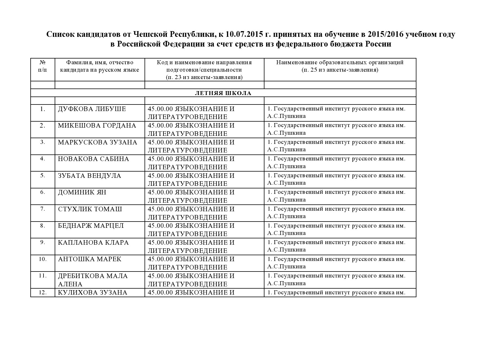 Ниже вы можете найти текущую информацию к 10.07.2015 г. о принятых на обучение кандидатах с указанием вуза и специальности обучения.