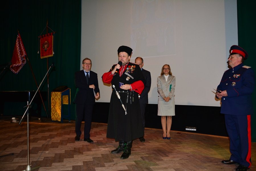 Poté vystoupil ataman Všekozáckého svazu českých zemí a Slovenska M.A. Dzjuba, který podrobně pověděl divákům o pravoslavném svátku „Pokrova Presvjatoj Bogorodicy» a jeho spojení s historií kozáctva.