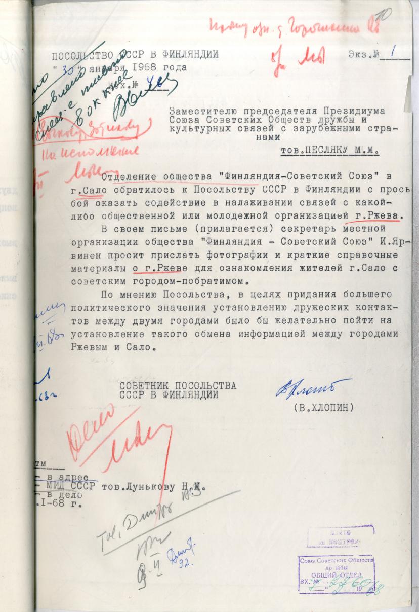 С ростом количества городов, желающих развивать дружественные связи стал насущный вопрос об организационном оформлении в СССР движения породнения. В 1964 году была создана Ассоциация по связям советских и зарубежных городов. Ее учредителями стали 70 городов Советского Союза. К этому времени были установлены дружественные связи советских городов с городами 40 стран мира, в том числе Великобритании, Египта, Индии, Индонезии, Италии, Пакистана, ФРГ, Финляндии, Японии. В 1967 году Ассоциация вошла в состав ССОДа. Благодаря этой организации к 1990 году 289 городов и регионов Советского Союза породнились с 530 городами и регионами в 71 стране мира.
