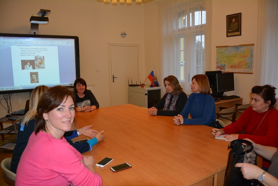 Вторая часть встречи была посвящена обмену опытом работы по изучению русского языка в разных странах, а также презентация работы Российского центра науки и культуры в Праге в части, касающейся образования, науки и изучения русского языка.