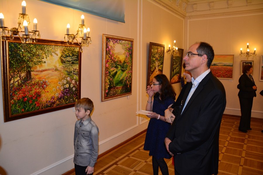 На открытии выставки «Мысли о добром» присутствовало около 70 человек, среди которых были соотечественники, граждане Чехии, Италии, Кубы и других стран.