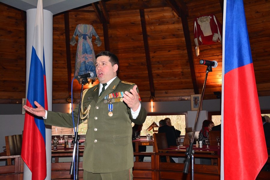 Затем состоялся праздничный прием с концертной программой. Собравшихся гостей приветствовал и поздравил с наступающим праздником военный атташе Посольства России в Чехии Игорь Щепин.