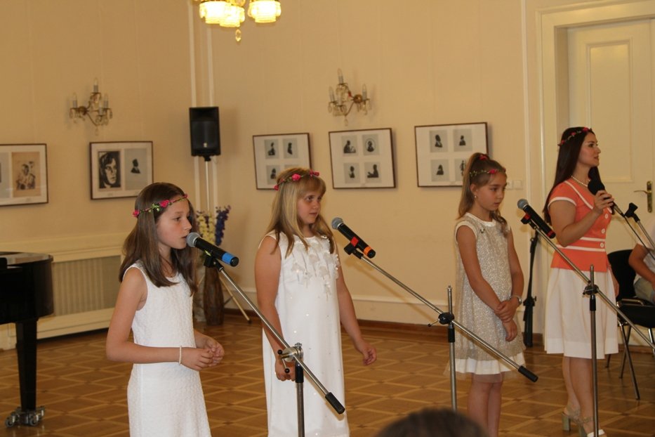 Вечер открыл ансамбль «Веселые нотки», который исполнил детские песенки «Лето», «Веселый музыкант» и чешскую песню «Танцевал дождевой червячок».