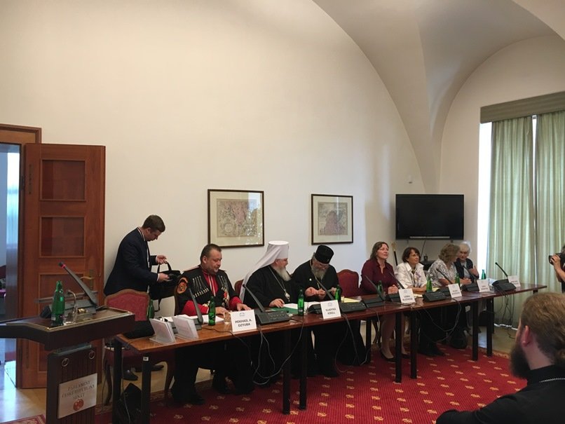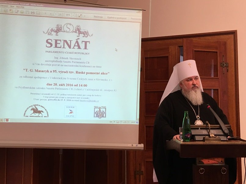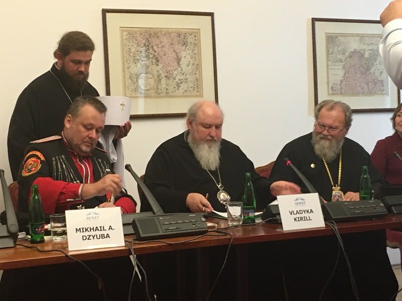 В конференции принял участие и выступил председатель Синодального комитета по взаимодействию с казачеством митрополит Ставропольский и Невиномыский Кирилл. Он подробно остановился на истории российского казачества, особо выделив период его возрождения и восстановления в последние 25 лет. Подчеркнул тесную историческую связь казачества с Русской православной церковью (РПЦ). Высказал слова благодарности чешскому народу и правительству Чехословакии, которые приняли и поддержали 95 лет назад около 40 тысяч покинувших Родину наших соотечественников. Среди них было также много казаков.