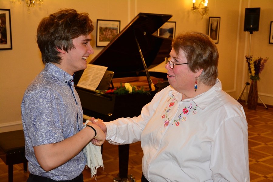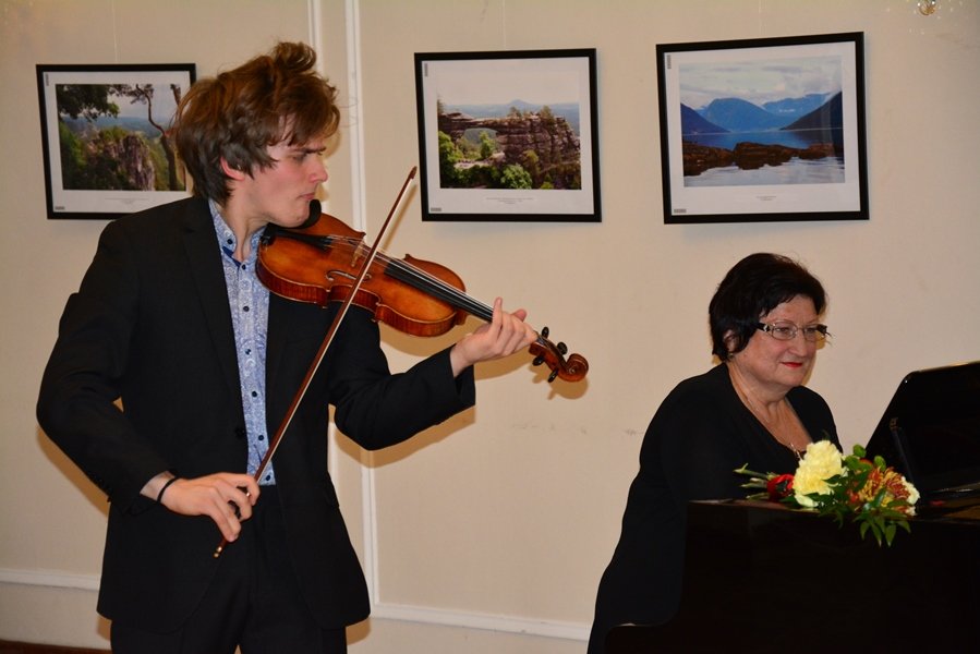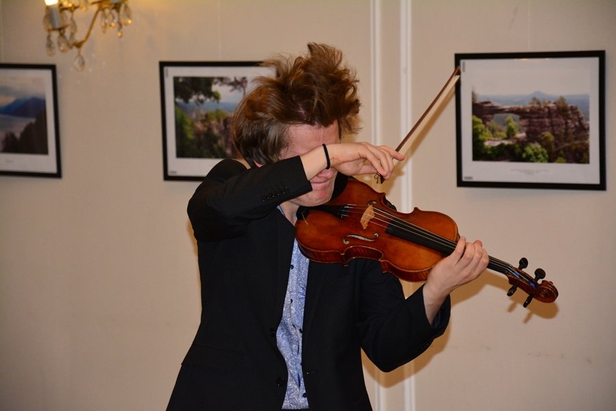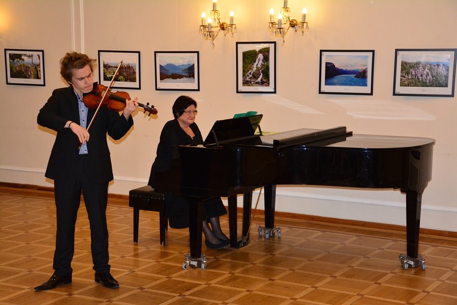 С сольным концертом выступил молодой российский талантливый скрипач, победитель многочисленных международных конкурсов Дмитрий Смирнов. Партию фортепиано исполнила лауреат международных конкурсов Людмила Набок. Их представил гостям заместитель руководителя представительства Россотрудничества в Чехии Олег Солодухин.