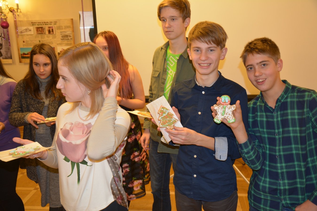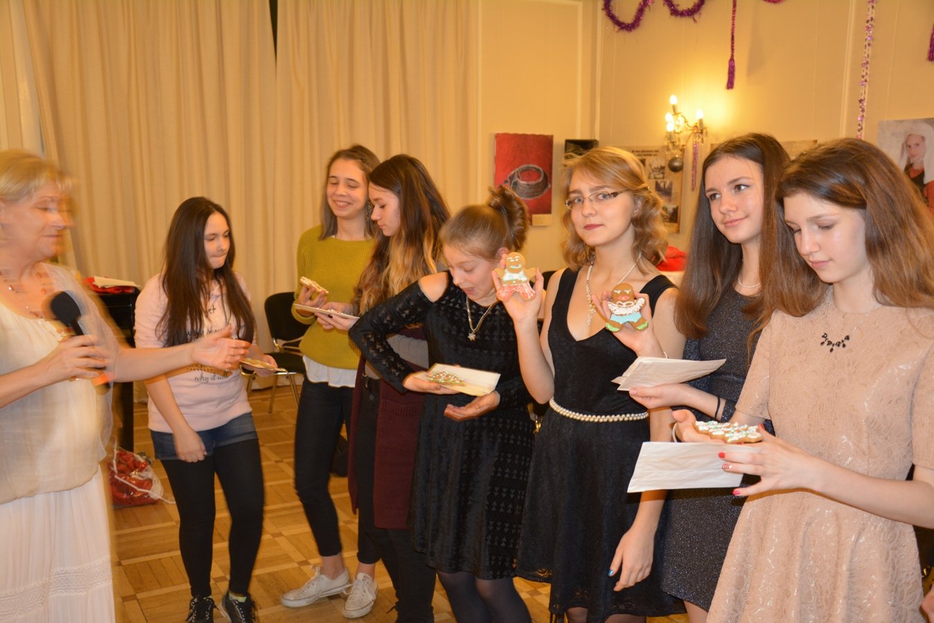 Дети приняли участие в творческих мастерских по росписи традиционных новогодних пряников, разбившись на команды соревновались, кто быстрее соберет и украсит елку, отгадывали названия фильмов в тематической киновикторине, пели песни из полюбившихся мультфильмов, демонстрировали танцы и читали стихи.