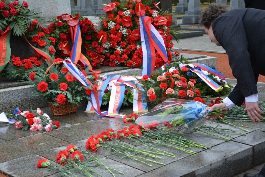 В 10 часов утра на центральном Ольшанском кладбище Праги прошла церемония возложения цветов и венков к Памятнику советскому воину-освободителю и могилам 437 солдат и офицеров Красной армии, погибших в дни освобождения Праги. Венки возложили Посол Армении в Чехии Тигран Сейранян, Посол Беларуси в Чехии Валерий Курдюков, Посол России в Чехии Александр Змеевский, а также сотрудники Посольства России в Чехии, представительства Россотрудничества и других российских загранучреждений, чешских и российских ветеранских организаций. Во время возложения были исполнены государственные гимны Армении, Беларуси, России и Чехии.