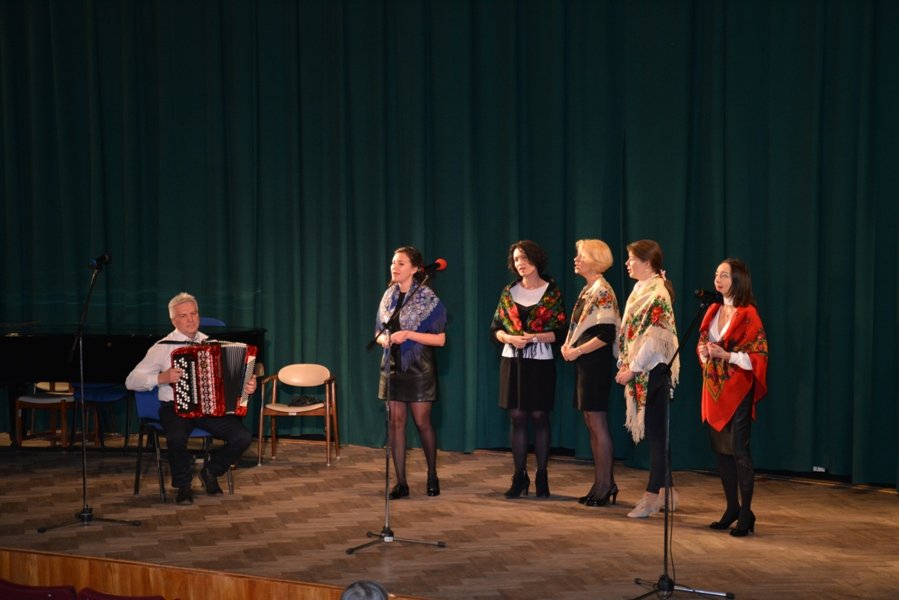 Затем выступили артисты ансамбля «Русская душа» — Зоя Половинкина, Ольга Гильмутдинова, Марина Одинцова, Валерия Тузикова, Светлана Степанова и Валерий Савичев (баян). Перед выступлением художественный руководитель Светлана Степанова представила новый коллектив. Отметила, что выступление посвящено памяти ансамбля песни и пляски имени А.В. Александрова. Были исполнены песни «Вечер на рейде», «Смуглянка», «Эх, дороги».