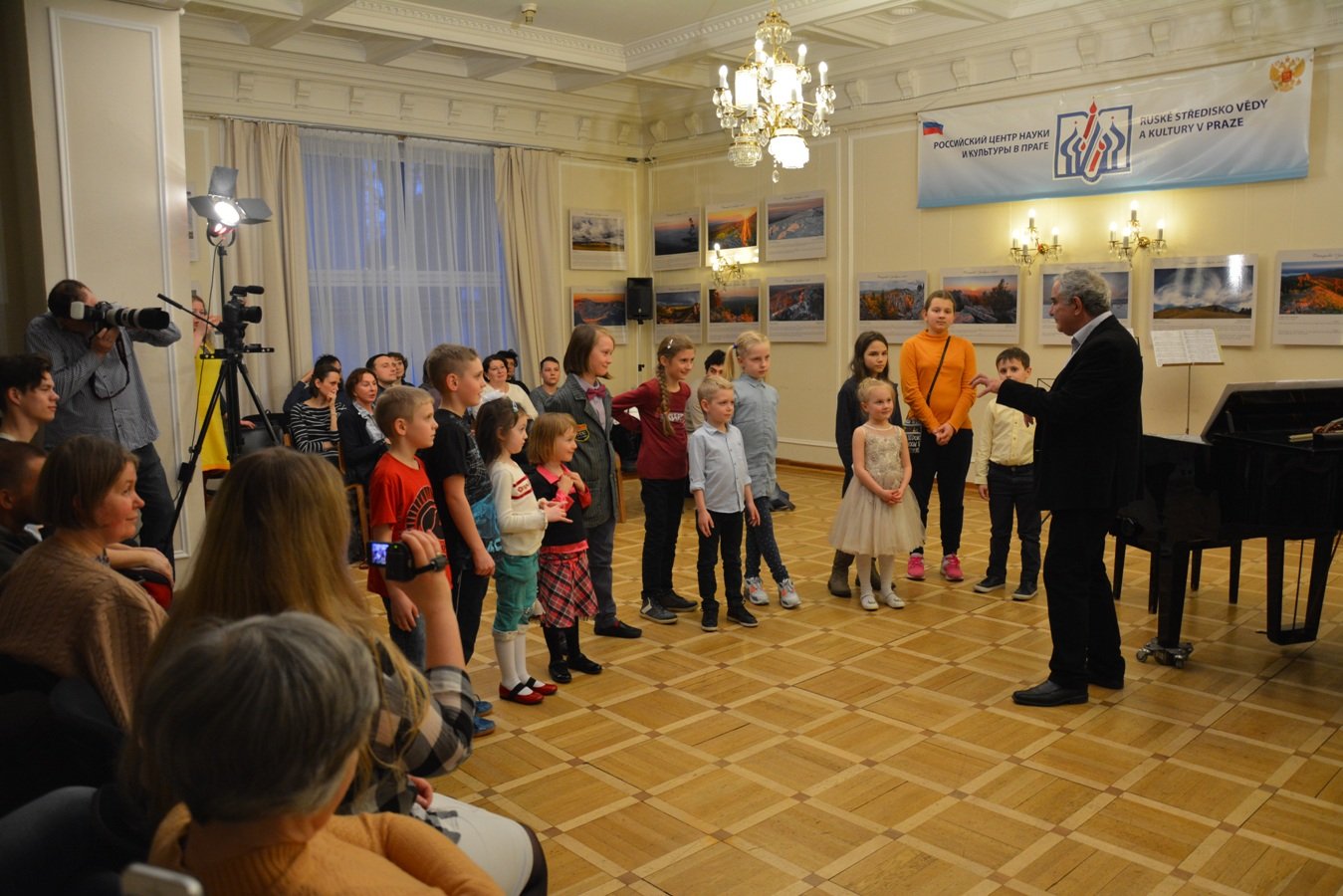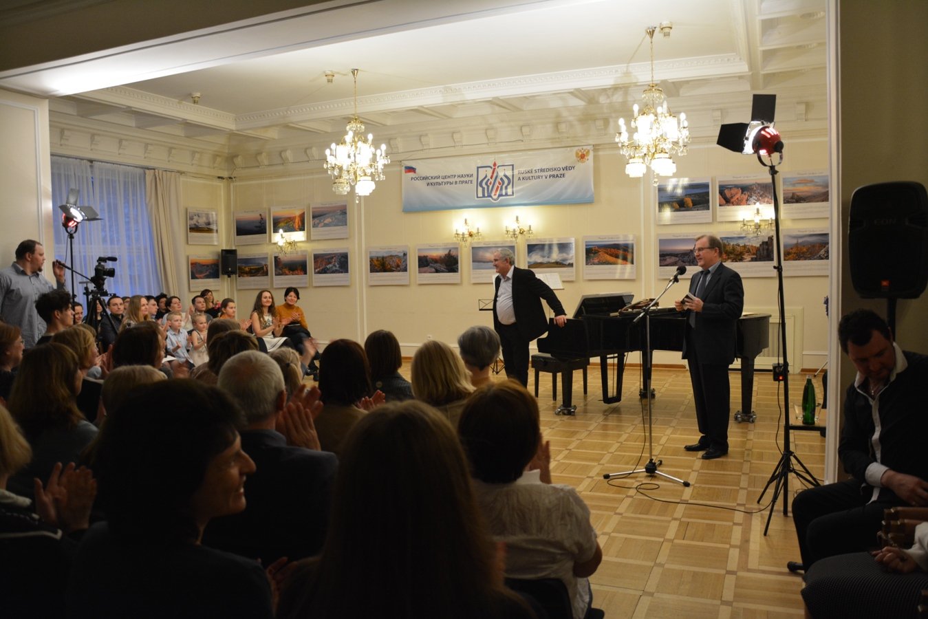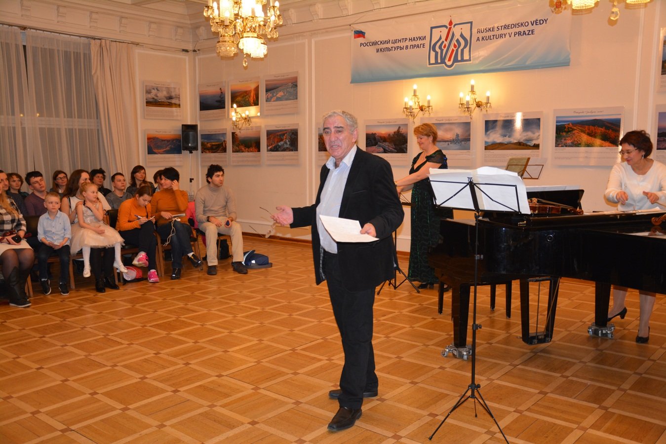 Hosty a účastníky večera přivítal vedoucí Zastupitelství Rossotrudničestva v ČR Leonid Gamza.