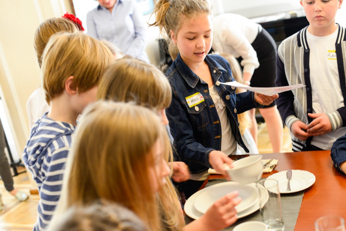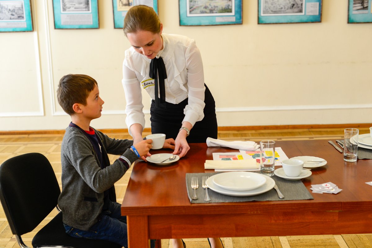В течение двух часов организатор школы из Москвы совместно со специалистом по этикету и коммуникациям Анной Диевой из Праги в игровой форме обучали детей правилам хорошего поведения. Участники мастер-класса — дети разного возраста играли в игры «Столовый этикет», «Общаемся-улыбаемся», а также «Образы Леди и Джентельмена».