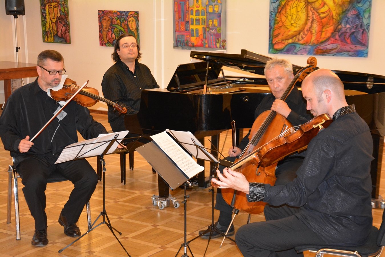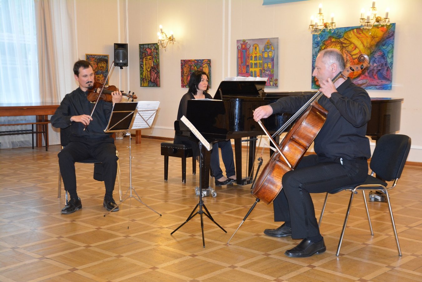В первом отделении музыканты чешского трио «Маэстро пиано» (Maestrio piano trio) исполнили произведение для скрипки, виолончели и фортепиано «Думки» op.90 Антонина Дворжака.