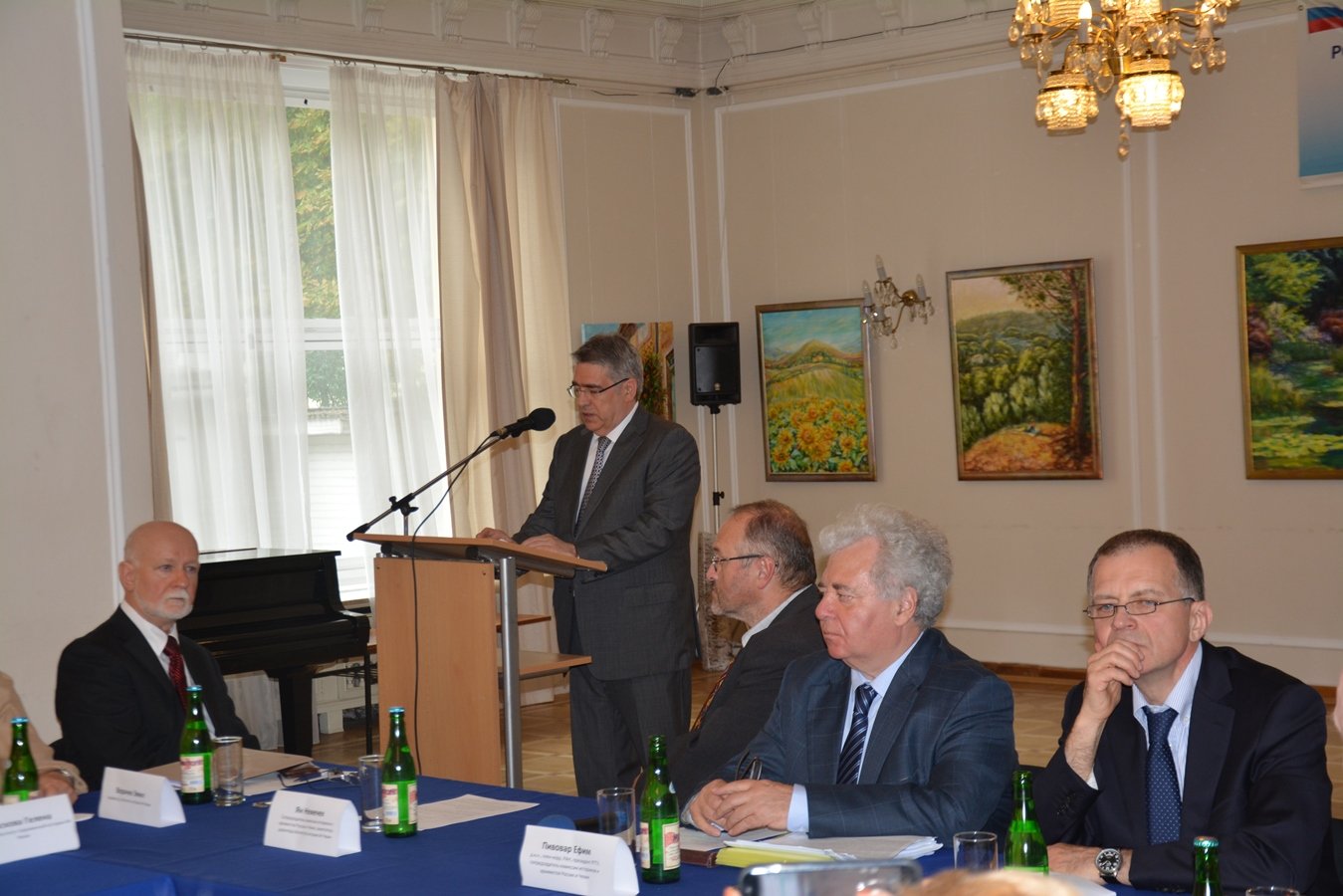 Круглый стол открыл Чрезвычайный и Полномочный Посол Российской Федерации в Чешской Республике Александр Змеевский. Он напомнил, что заседание проводится в год 100-летия русской революции и накануне юбилея образования в 1918 г. независимой Чехословакии. Отметил, что 23 июня с.г. на заседании Правительственной комиссии по делам соотечественников за рубежом в Доме русского зарубежья им. А.И.Солженицына в Москве министр иностранных дел Российской Федерации Сергей Лавров сообщил о планах уже в ближайшее время открыть на базе Дома первый в России Музей русского зарубежья. Считает, что богатое историческое и культурное наследие русской эмиграции в Чехословакии может и должно занять в этом музее достойное место.
