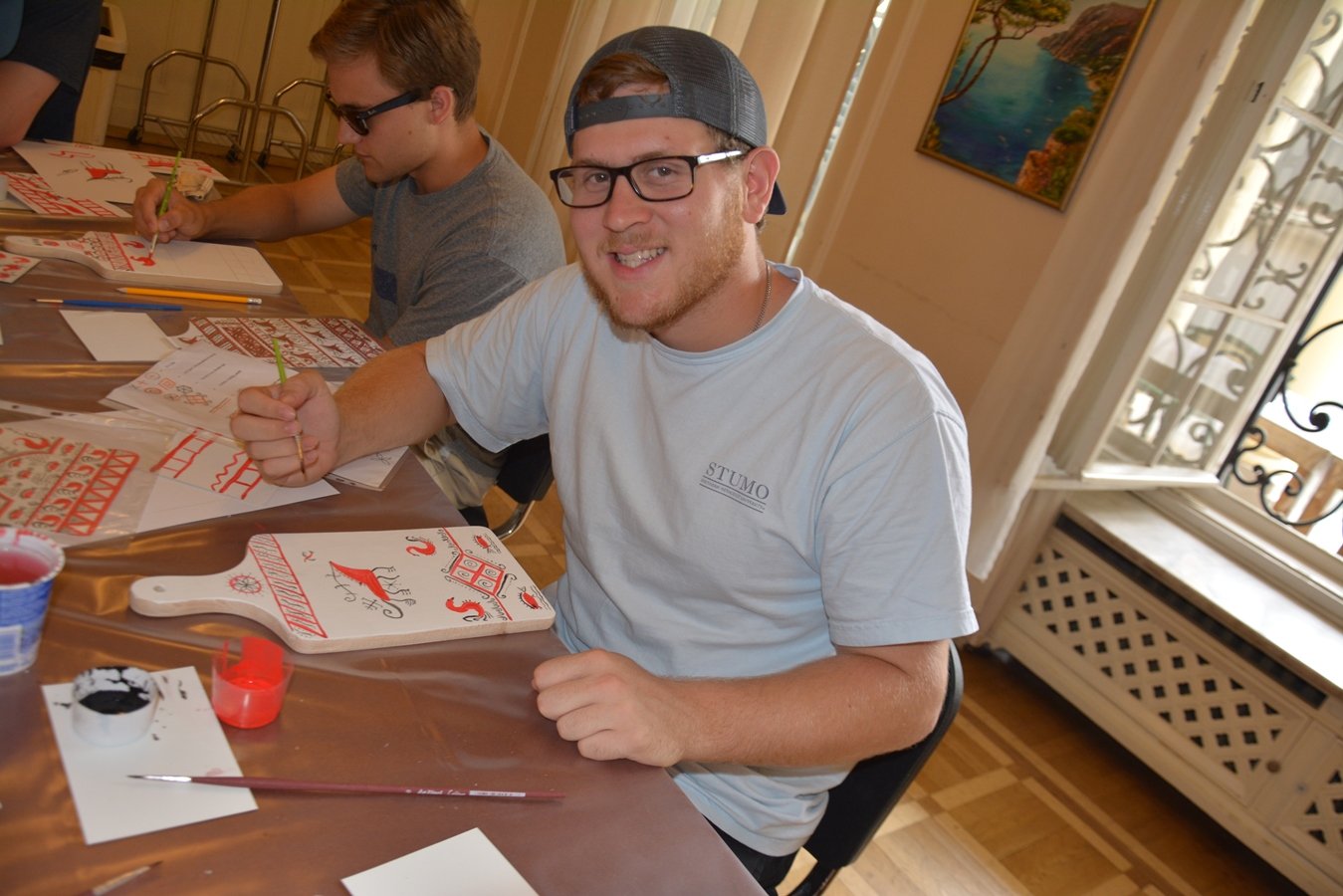 Мастер-класс в РЦНК вызвал у американских студентов большой неподдельный интерес. Каждый из них с радостью унес с собой на память в качестве сувенира частичку русской культуры — разделочные доски, расписанные собственноручно в технике мезенской росписи.