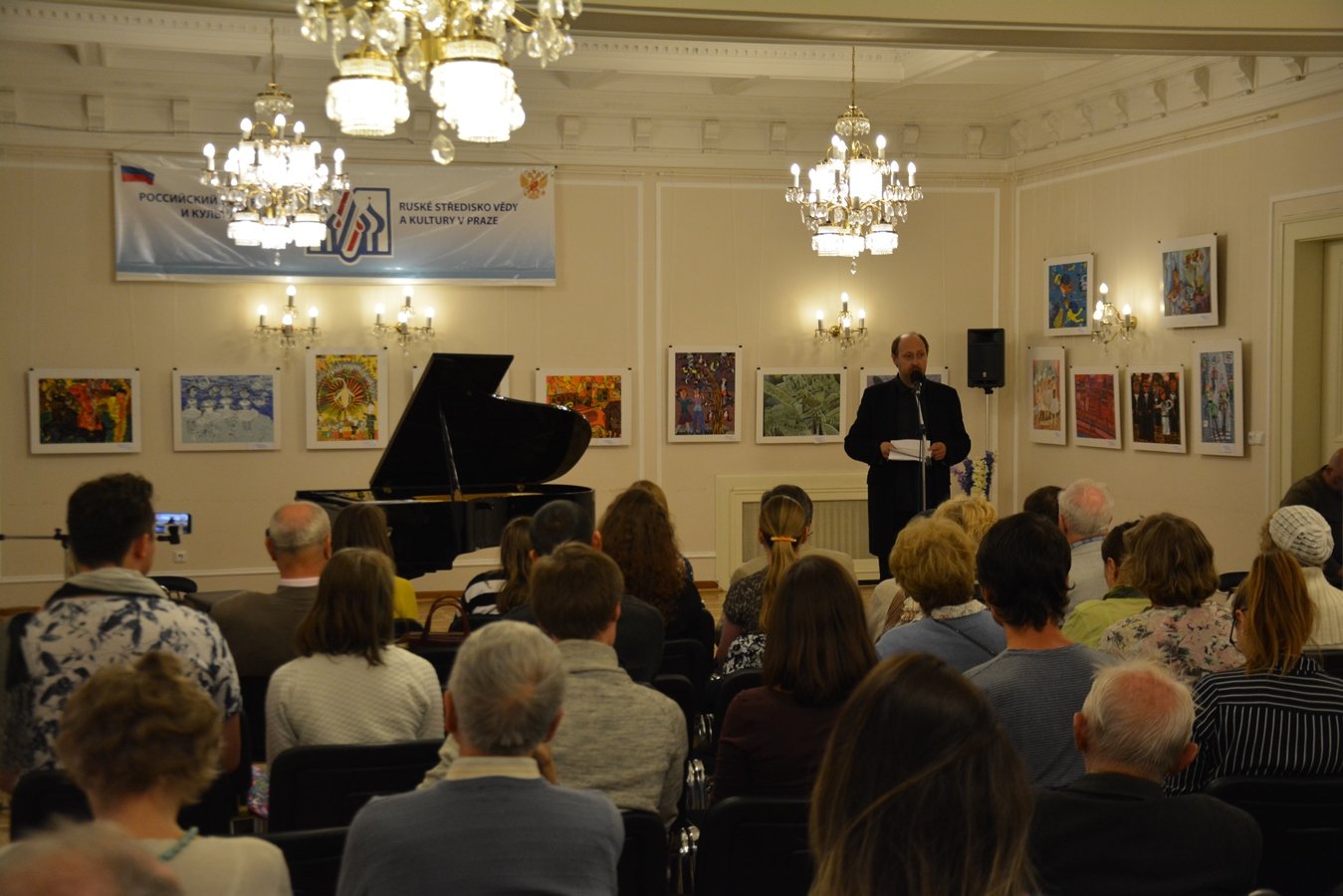 Koncert zahájil vedoucí Zastupitelství Rossotrudničestva v ČR L. Gamza, který představil umělce a popřál divákům hezkou zábavu.