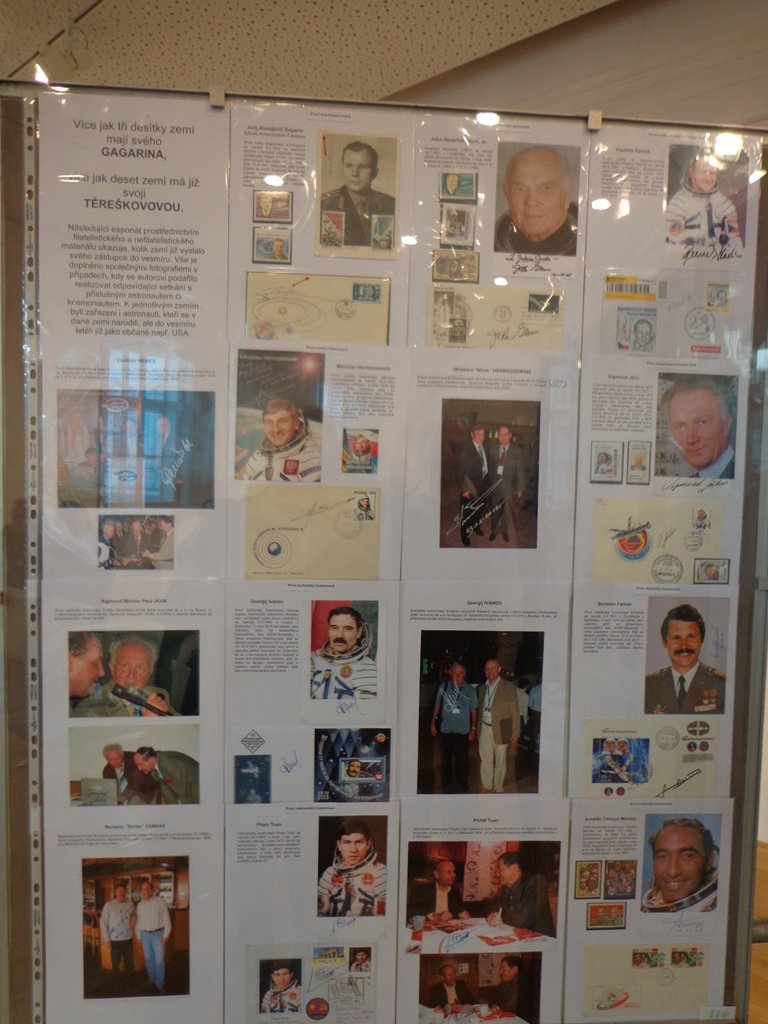 На выставке представлены более 400 листов формата А4 с уникальными марками разных стран из коллекций чешских филателистов, посвященных освоению космоса. Основными разделами стали «Программа Восток и Восход», «Программа Буран», «Первая женщина в космосе», «Шаги Чехословакии в космос». Также представлены 64 фотографии космонавтов разных стран мира с их автографами.