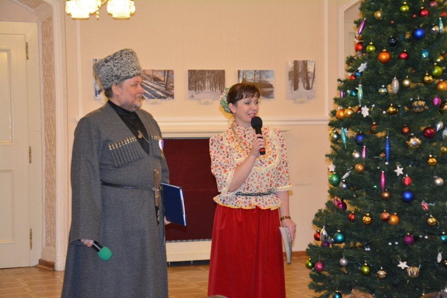 Атаман Михаил Дзюба и его супруга Ирена Дзюба приветствовали маленьких гостей праздника и их родителей. Начали вечер с небольшого рассказа об истории возникновения «казачьей ёлки», о казачьих традициях и важности их сохранения и передачи следующем поколениям. Они поздравили присутствующих с наступающими праздниками и отметили, что это уже шестая по счету Атаманская ёлка, проводимая в стенах РЦНК в Праге. Указали, что мероприятие проводится по благословению архиепископа Пражских и Чешских земель владыки Михаила. Представление велось на двух языках – русском и чешском.