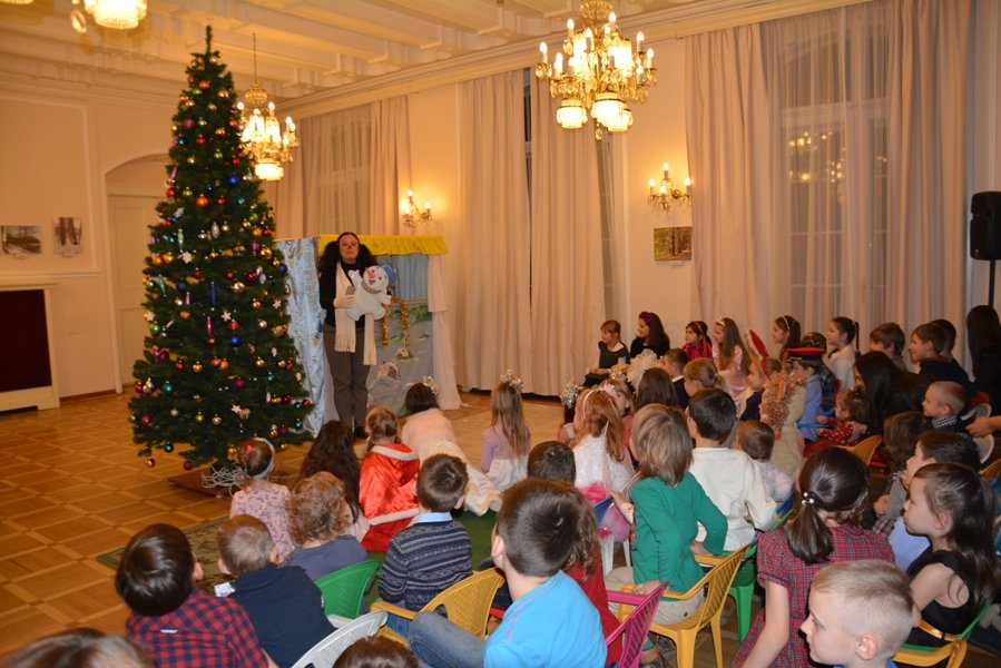 Концертную программу открыло выступление чешского кукольного театра «Улыбка» (Divadlo «Úsměv»), который показал спектакль «Как собачка и кошечка писали письмо Деду Морозу». Представление вызвало большой интерес у маленьких зрителей, которые с радостью принимали участие в действии, общались с артистами и помогали писать письмо Деду Морозу.