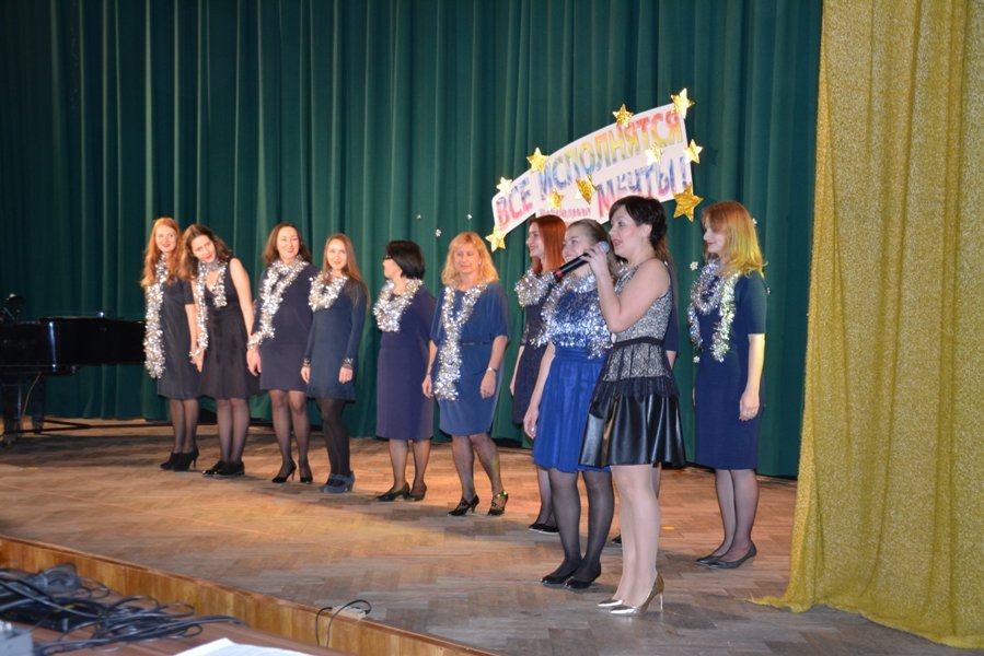 В конце программы перед зрителями также выступил взрослый вокальный ансамбль под руководством педагога Натальи Мразовой. Они исполнили песню «Go down moses» под фортепианный аккомпанемент своего педагога.