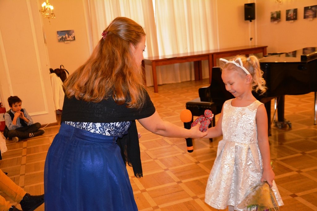 Гости вечера с удовольствием приветствовали выступление младшей и старшей групп театральной студии под руководством Марины Лаптевой. Ребята показали инсценированное представление по мотивам стихотворений Даниила Хармса «Врун» и Кирилла Авдеенко «Домовята и каша».