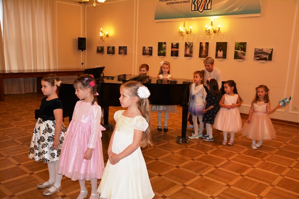 В программе концерта прозвучали вокальные и фортепианные произведения в исполнении учеников пражских педагогов Натальи Мразовой, Елизаветы Согомоновой, Елены Грачевой и учащихся субботней школы студии «Микс» (преподаватель Марина Лаптева).